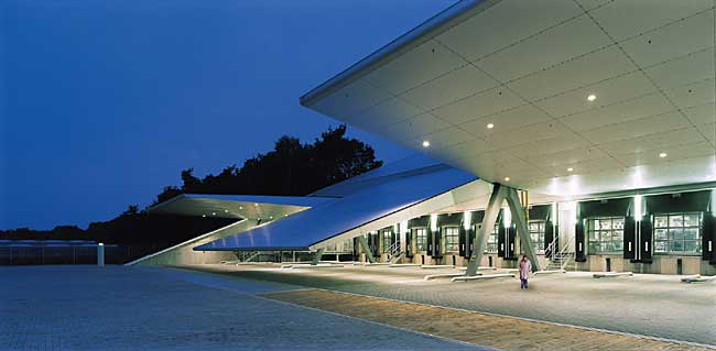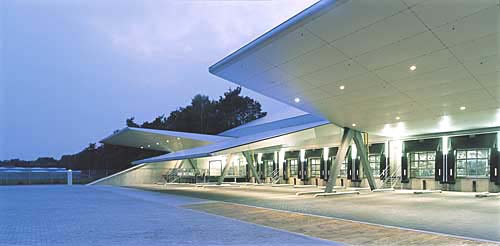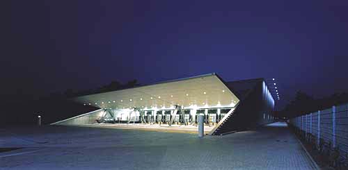 • Abschluss/Verschluss: Tor schliesst nahtlos an Dachkonstruktion an und wird damit zum Teil des Daches. Ein Schwerlastgitter im unteren Bereich schützt das zum Dach gewandelte Tor vor unbefugtem Zutritt. Das Schwerlastgitter wird im geöffnetem Zustand des Tores zum Überfahrgitter.